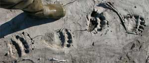 The next day, or one of those rainy days, equipped for the rain, despite my preferences, I set out for a walk-about. The alternative was abject boredom in the tent, looking out through the side windows. A nearby rock bluff on the slope, on my side of the river, was only short walk across the flat. I could gain the bluff without walking through the dense wet brush of the hillside, and command a better view of the valley. Within a few steps from the tent, looking at the bluff, I distinctly remember commenting to myself that I hoped that large dark spot was just a rock face I had not noticed.