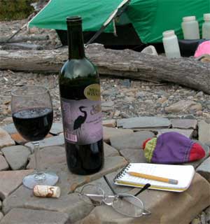 I floated down stream for an hour or so, away from lurking bear tracks, camped at a place I should have camped on the way up because it was so nice, set up the folding chair, and uncorked a superlative bottle of wine, if you can imagine that.