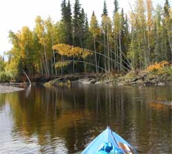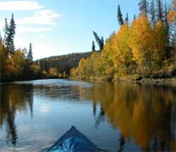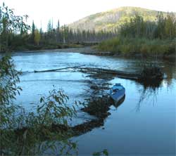 But I got my kayak repaired by replacing the hull, modified to my standards, as you might notice, and left Fairbanks early on the opening day of food gathering season, still desperate on account of the weather. It was raining, hard. It had been raining, hard, a lot. In fact, there may have been more rain in interior Alaska this year, than any other year since the Pleistocene, or at least since the last heavy rain stories were told.