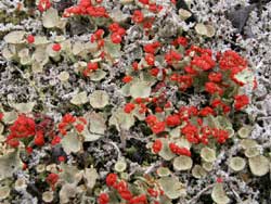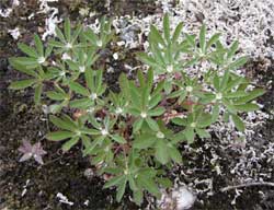 These particular hillsides at the edge of the bare rock of the glaciated Alaska Range are vegetated with what grows on rock and water alone, and a few little dirt patches that produce delightful accents of colorful flowers clustered in sheltered spots. One cannot avoid smiling upon encountering the bright flowers.