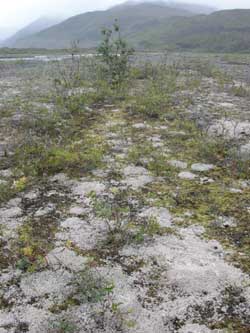 This spot offers a flat paradise garden of intriguing new plants, soft moss surface, and beautiful images. The world's finest gardeners, with consulting artists and a climate controlled greenhouse, could not create and sustain such a spot of beauty and intrigue for the enjoyment of those wise enough to not trudge all the way out to an Alaska Range glacier terminus ecosystem. Oh, if you are tempted to do so, you cannot trudge there without a kayak or canoe along the river, and the nerve. The brush, creeks, ponds and swamps preclude walking much distance. And grizzly bears lurk in that brush. Hungry grizzly bears, made irritable by all that rain.