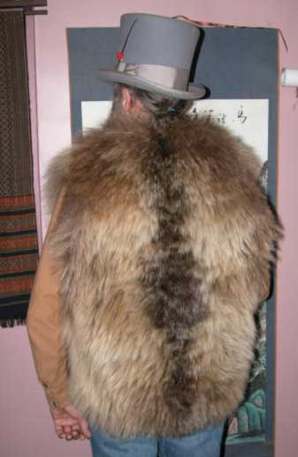 The reason I made a vest out of a grizzly hide was because the hide was found in a dumpster, by Larry the dumpster diver, to whom I traded trade material to acquire the hide. It had been an older rug, and had the claws cut off.